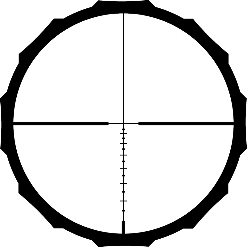 The Crimson Trace Hardline is a 4-16x42mm riflescope with 30mm tube diameter and BDC Long Range reticle designed for tactical and target shooting. It features a second focal plane, 1/4 MOA adjustments, spring-loaded zero reset, and is fully waterproof and shockproof with aerospace-grade construction. Weight is 20 oz.
