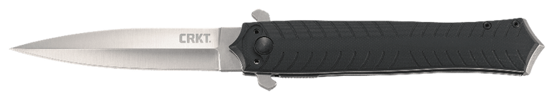 The CRKT Xolotl is a 3.64" folding spear point knife featuring a 4116 stainless steel blade with a plain edge and flipper opening mechanism. It has a black G10 handle, weighs 4 oz, and includes a pocket clip for everyday carry.