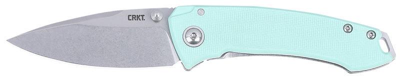 The CRKT Tuna is a compact EDC folding knife featuring a 2.73" stonewashed 14C28N steel blade with a plain edge and thumb stud opening mechanism. The knife has an overall length of 6.44" when open and weighs 2.80 oz, with a G10 and stainless steel handle construction designed for everyday carry.