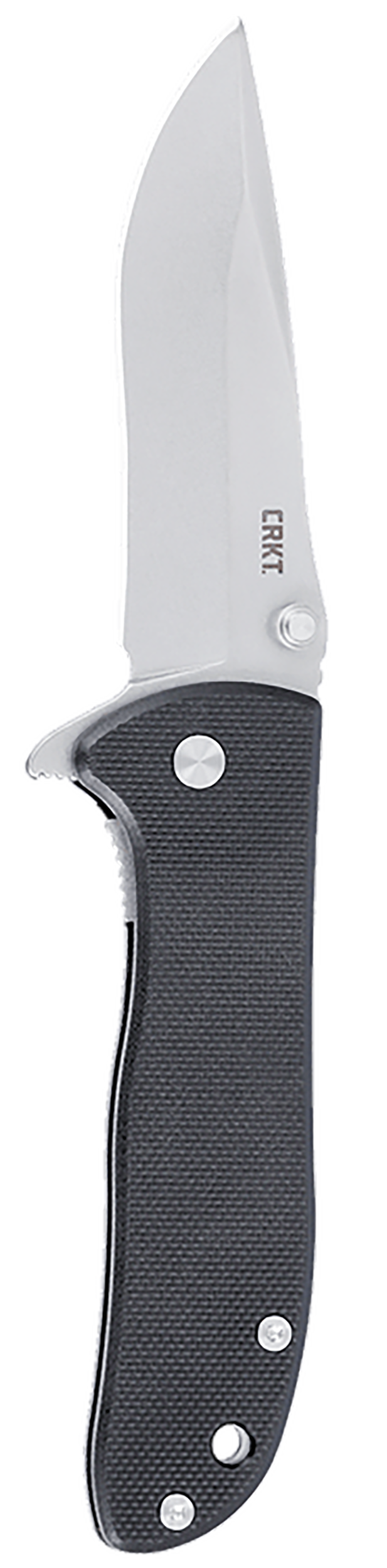 The CRKT Drifter is a compact EDC folding knife featuring a 2.88" drop point blade in stonewashed D2 steel with a plain edge. It has a black textured G10 handle, IKBS opening mechanism, and an overall length of 6.50" when open, weighing 2.40 oz for everyday carry use.