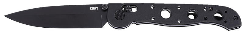 The CRKT M16-03XK is an everyday carry folding knife featuring a 3.57" D2 steel spear point blade with plain edge and thumb stud opener. The knife has an overall length of 8.25" when open and weighs 2.90 oz, with a black Grivory handle for durability and comfort.
