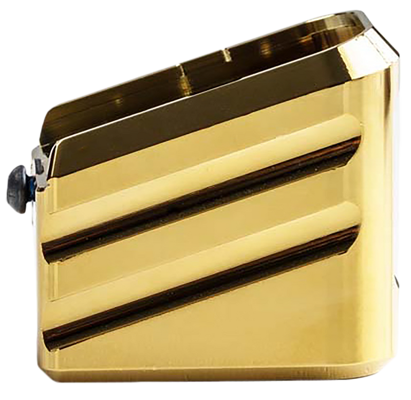 This aluminum magazine extension is designed to fit Glock 17, 22, and 31 pistols across all generations (Gen 1-5). The gold aluminum construction provides a durable, corrosion-resistant finish while extending magazine capacity. This accessory allows shooters to increase round count and improve grip ergonomics on compatible Glock models.