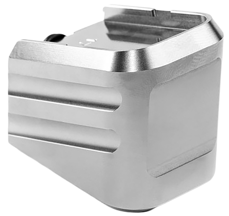 This magazine extension fits Glock 19, 23, and 32 pistols across all generations 1-5. Manufactured from silver aluminum, it extends magazine capacity and maintains reliable feeding. The extension increases grip length for improved ergonomics and control.