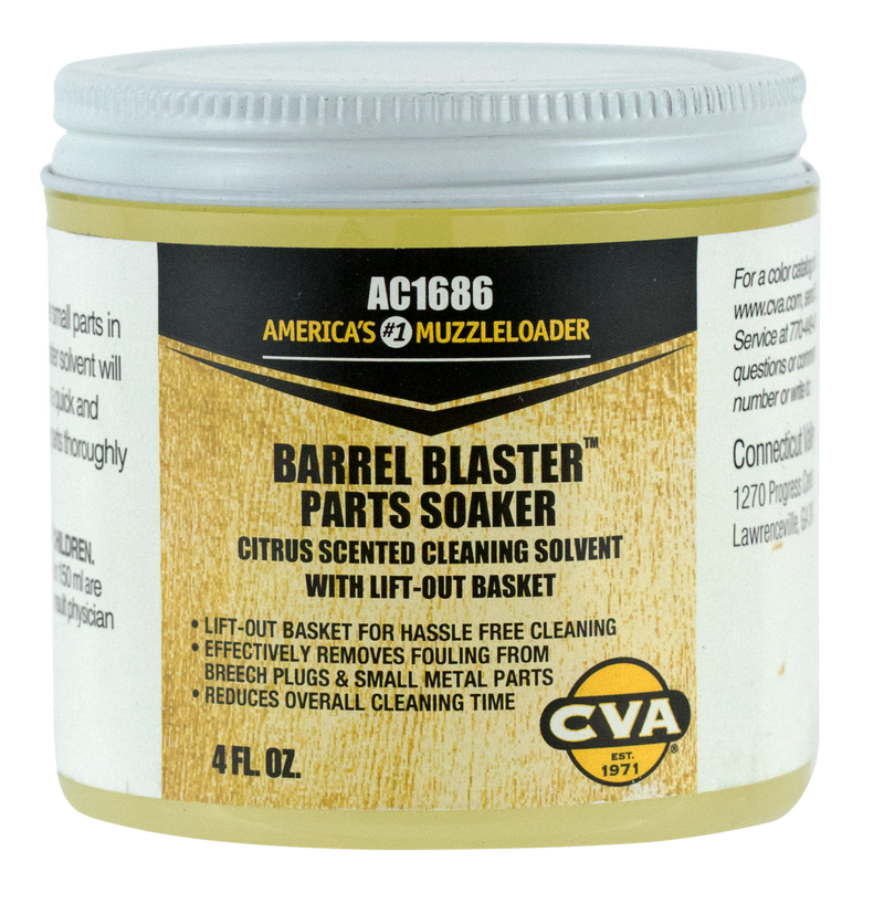 A solvent designed to soak heavily fouled black powder parts such as breech plugs and nipples. This 4 oz liquid removes fouling and is suitable for cleaning small gun components. The product is hazardous and restricted for air shipping.