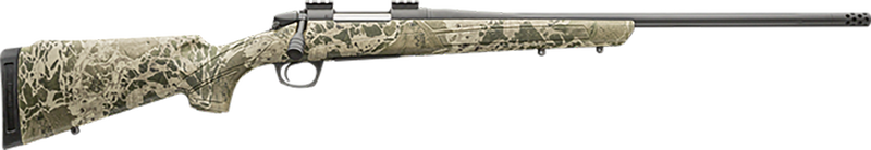 The CVA Cascade XT is a 223 Rem bolt-action rifle featuring a 22" steel barrel with radial muzzle brake and 5/8x24 threading, 1:9 twist rate, and 4+1 capacity. It includes a two-piece scope base, adjustable length of pull synthetic stock with Realtree Hillside camo, and weighs 6.95 lbs. The receiver is drilled and tapped for optics and finished in graphite black Cerakote.