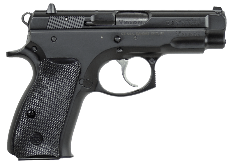 The CZ 75 Compact is a DA/SA semi-automatic pistol chambered in 9mm Luger with a 3.75" cold hammer-forged barrel and 10+1 capacity. Features a steel frame with black polycoat finish, fixed sights, manual safety with hammer/firing pin block, and plastic grips. Weighs 32.5 oz with overall length of 7.24", making it suitable for concealed carry and personal protection.