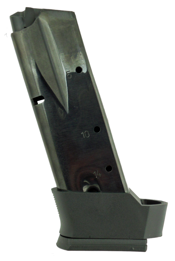CZ 2075 RAMI magazine chambered in 9mm Luger with 14-round capacity. Constructed from blued steel with a grip extension feature for improved handling. Detachable magazine designed specifically for CZ 2075 RAMI pistol models.