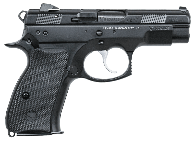 The CZ 75 D PCR Compact is a double-action/single-action semi-automatic pistol chambered in 9mm Luger with a 3.75-inch cold hammer-forged steel barrel and 14-round capacity. It features a lightweight forged aluminum alloy frame with beavertail, decocking lever, serrated steel slide, fixed 3-dot sights, and black polycoat finish, weighing 27.5 oz. Originally designed for the Czech Republic police force, the PCR (Police Czech Republic) is well-suited for personal protection and sport shooting with excellent everyday carry characteristics.