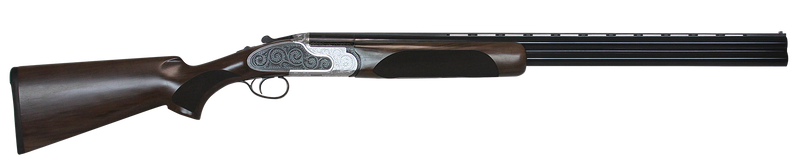 The CZ Wingshooter Elite is a 12 gauge over/under shotgun with a 3" chamber, 28" ventilated rib barrel, and 2-round capacity. Features include a hand-engraved 2-tone receiver, Turkish walnut stock, single selective trigger, and includes 5 choke tubes (C, IC, IM, M, F). Weighs 7.4 lbs with an overall length of 45.75".