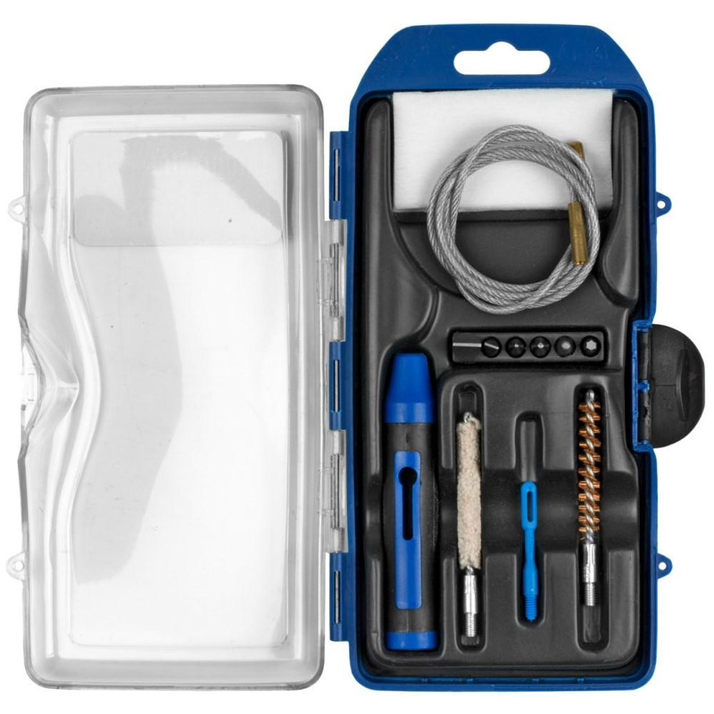 This 12-piece compact rifle cleaning kit is designed for .243, 6mm, and 6.5mm calibers and features a pull-through rod for efficient field cleaning. The kit includes a 6-piece driver bit set and is compact enough for portable use. The pull-through cable design enables quick cleanings when time is limited.