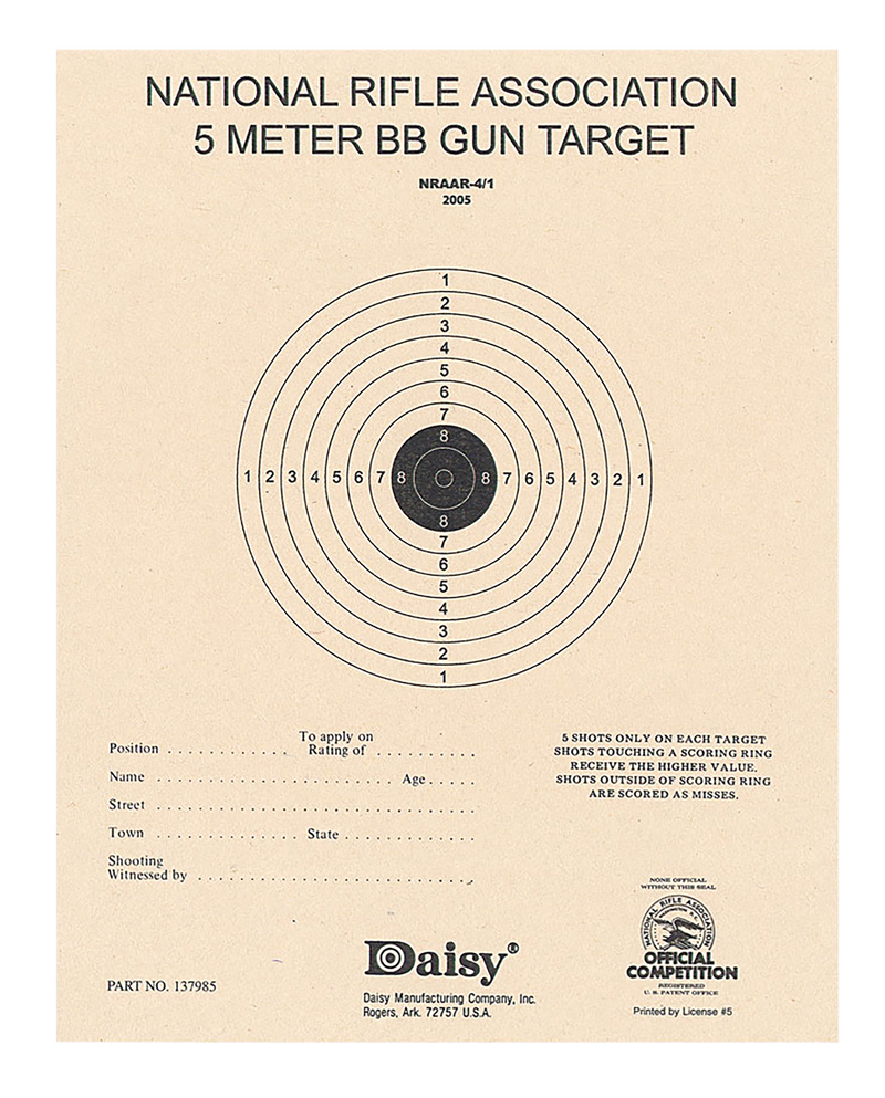 Daisy NRA 5-Meter Target Air Rifle Bullseye Hanging Paper Black/White - 990408810