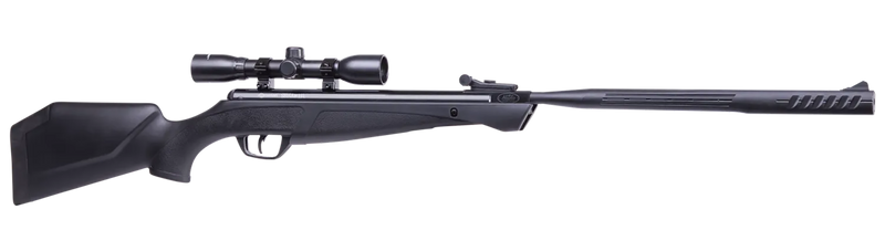 .22 caliber break-action air rifle with nitrogen piston technology delivering up to 950 feet per second. Features a rifled barrel, fixed synthetic stock with checkering, and includes a 4x32mm CenterPoint scope. Weighs 6 lbs with an overall length of 47.2 inches.
