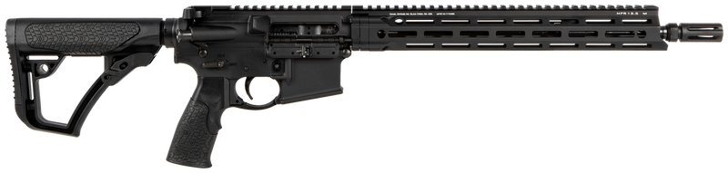 Semi-automatic rifle chambered in 5.56 NATO with a 14.5" chrome-lined, threaded barrel and 1:7 twist rate. Features a 15" M-LOK rail, Daniel Defense soft touch furniture, adjustable collapsible stock, and permanent flash suppressor. Weighs 5.9 lbs with overall length of 31.5" to 34.75", ships without magazine.