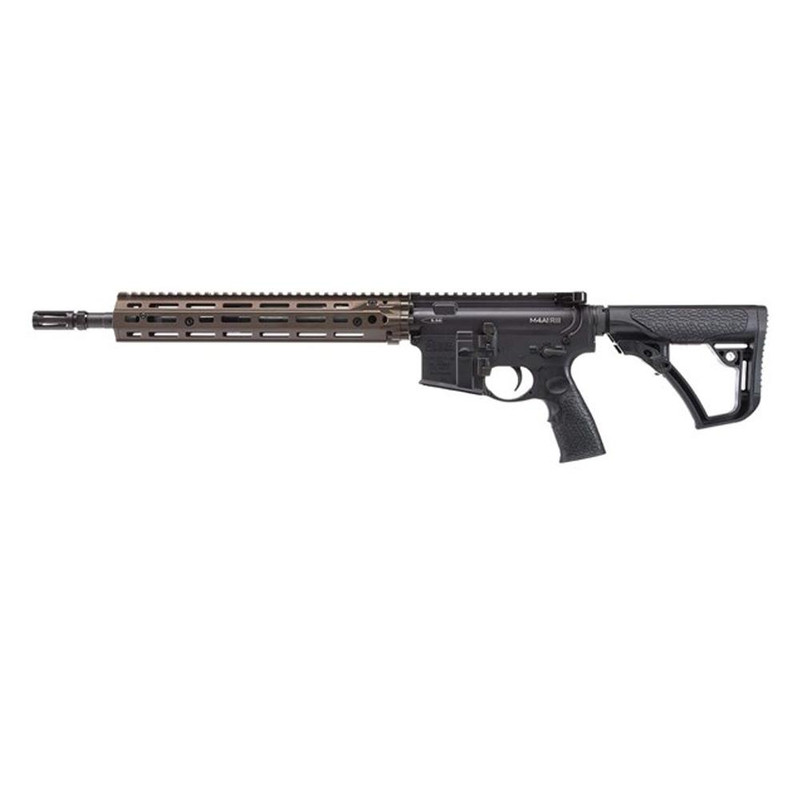 Semi-automatic rifle chambered in 5.56 NATO with a 14.5" pinned and welded chrome moly vanadium barrel featuring a 1:7 twist rate. Features a fully ambidextrous lower receiver, mid-length gas system, FDE 12.5" RIS III M-LOK rail, and DD soft touch furniture with collapsible stock. Weighs 6.39 lbs and measures 31.5" to 34.75" overall length.
