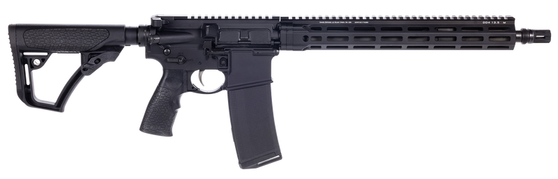 Semi-automatic AR-platform rifle chambered in 5.56 NATO with a 14.5" cold hammer forged barrel pinned and welded with Dead Air Xeno Flash Hider to achieve 16" OAL. Lightweight at 6.2 lbs with a fully ambidextrous lower, 13.5" M-LOK handguard, Daniel Defense furniture, and threaded 1/2x28 barrel for suppressor compatibility.