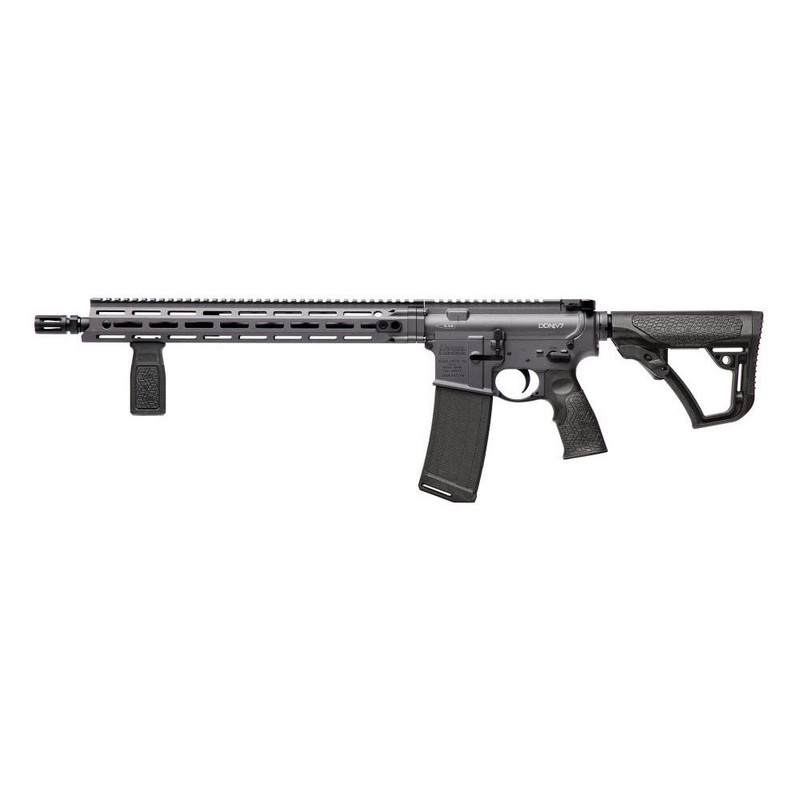 The Daniel Defense DDM4 V7 is a semi-automatic AR-15 style rifle chambered in 5.56 NATO with a 16" cold hammer forged barrel and 1:7" twist rate. Features include a 15" DD MFR M-LOK handguard, low-profile gas block, 1913 Picatinny rail, and Daniel Defense furniture with a 6-position stock. The rifle weighs 6.2 lbs, has an overall length of 32.25" to 35.875", and comes with one 32-round magazine and a threaded barrel.