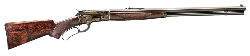 The Davide Pedersoli 1886 Sporting is a lever-action rifle chambered in 45-70 Government with a 26" blued octagonal barrel and 8+1 capacity. Features a color case-hardened frame, fixed walnut stock, and receiver drilled and tapped for optics. This full-size rifle weighs 9.81 lbs and has a traditional front dovetail blade and rear buckhorn sights.
