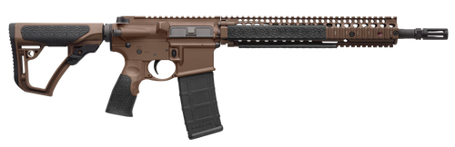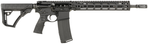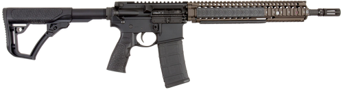 Semi-auto rifle chambered in 5.56 NATO/.223 Rem with a 14.5" cold hammer-forged, chrome-lined barrel featuring a pinned flash hider and threaded muzzle (1/2x28). Features a CNC-machined 7075-T6 aluminum receiver, collapsible DD furniture stock, black RISII rail system, and ships with one 32-round magazine. Overall length is 31.5-35.75" with a weight of 12.6 lbs.