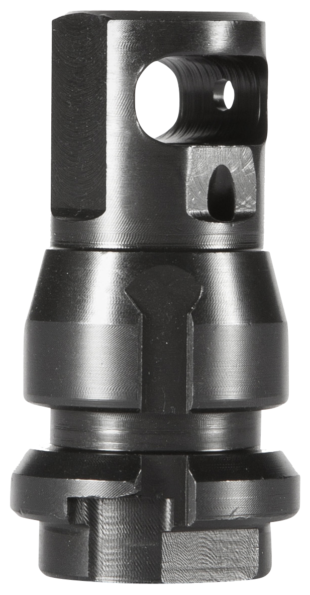 The KeyMicro Brake is a lightweight single-port muzzle brake designed for 9mm platforms and compatible with Dead Air's KeyMicro Adapter and KeyMo system. Constructed from steel with a black finish, it features a .38 bore and 5/8x24 thread pattern, measuring 2.06 inches in overall length. This minimalist brake can function standalone or paired with the KeyMicro Adapter for an integrated mounting platform.