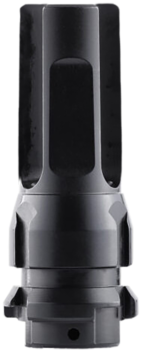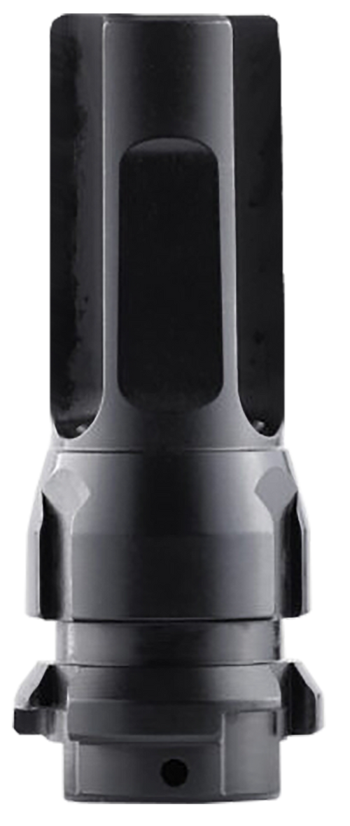 This .22 caliber flash hider features a unique design with mass-shifted equal length tines that eliminates "pinging" while reducing muzzle flash. It is compatible with Dead Air's KeyMo and KeyMicro equipped suppressors, including the Sandman Series and Wolfman. The flash hider includes a pre-drilled pin and weld hole for permanent installation and features black nitride finish on 4140 HT alloy steel construction.