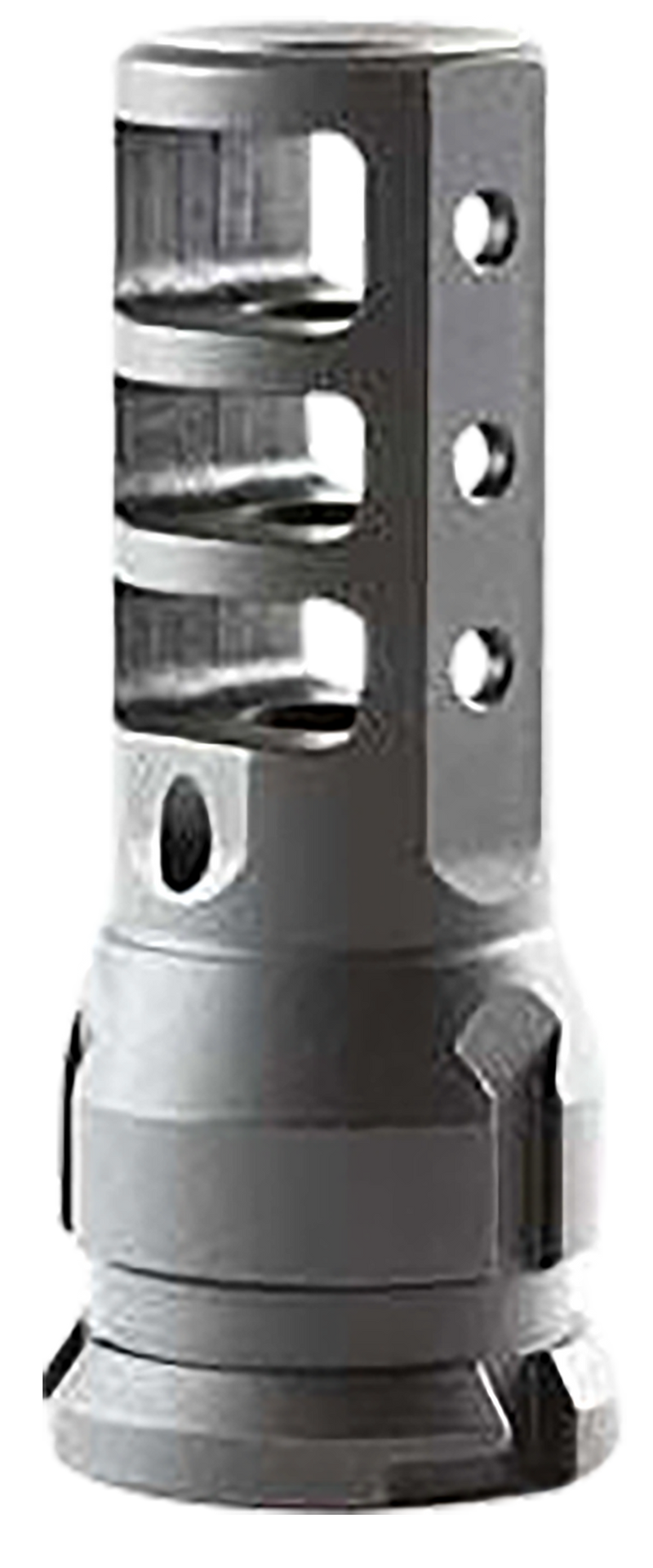 The KeyMo .46 muzzle brake is designed for .45 caliber and larger rifle barrels with 11/16-24 thread pitch. Constructed from 4140 HT alloy steel with nitride finish, it features a quick-detach KeyMo mount system that enables rapid attachment of Dead Air suppressors without requiring shims. The ported design efficiently manages gas and pressure for superior braking performance and reduced recoil.
