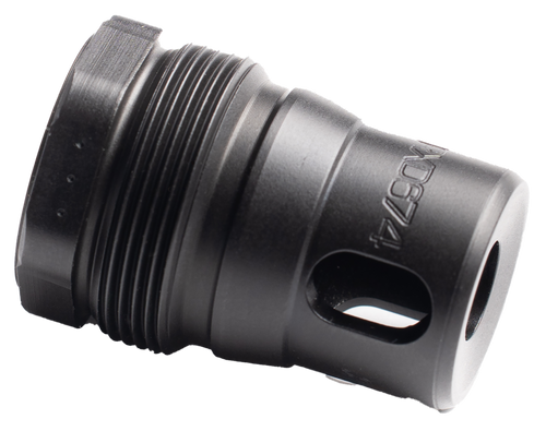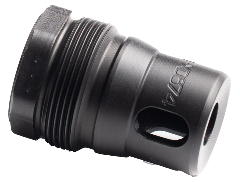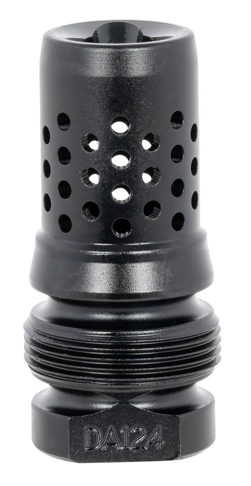 The Dead Air XRF Xeno is a rimfire muzzle brake engineered for use with the RXD22Ti suppressor, featuring a streamlined quick-detach mounting system and single-port brake design. Constructed from 17-4PH stainless steel with black nitride finish, it is compatible with M10x1 threaded barrels and offers a secure, repeatable lockup across multiple rimfire platforms. The tapered design helps capture lead and debris while maintaining suppressor efficiency.