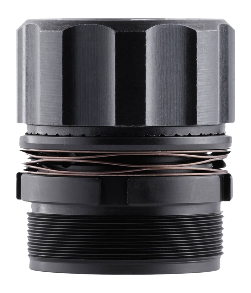 This is a suppressor mount adapter that connects Dead Air HUB-compatible silencers to firearms with 1.375x24 threaded barrels. Constructed from 17-4 stainless steel with nitride finish, it features a taper design with secondary retention for secure installation on HUB socket silencers.