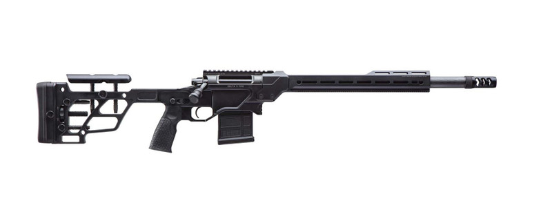 Bolt-action rifle chambered in 6.5 Creedmoor with an 18" cold hammer-forged varmint barrel and 1-in-8 twist rate. Features a Timney Elite Hunter trigger, 20 MOA Picatinny base, and 5/8x24 threaded barrel. Includes aluminum Daniel Defense chassis, weighs 13.2 lbs, and comes with one 10-round AICS PMAG.
