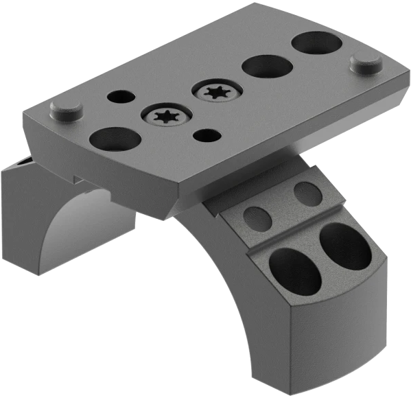 This is a ring top mount designed for the Leupold DeltaPoint Pro red dot sight, compatible with 35mm tube diameter optics. The mount features a matte black aluminum construction and attaches to Picatinny/Weaver rails, allowing for top or 45-degree angle mounting options for versatile tactical setups.