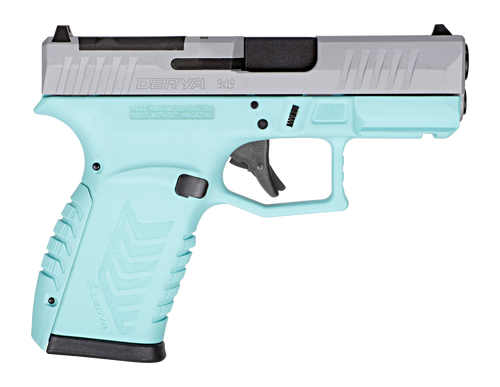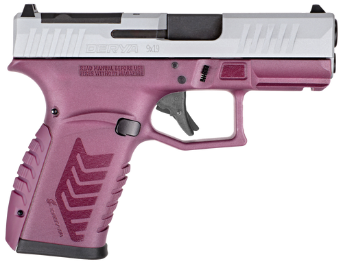 The Derya DY9Z is a 9mm semi-automatic pistol featuring a 3.5" barrel and 15-round capacity. This striker-fired handgun is finished in purple and silver, offering a distinctive appearance for everyday carry or sport shooting.