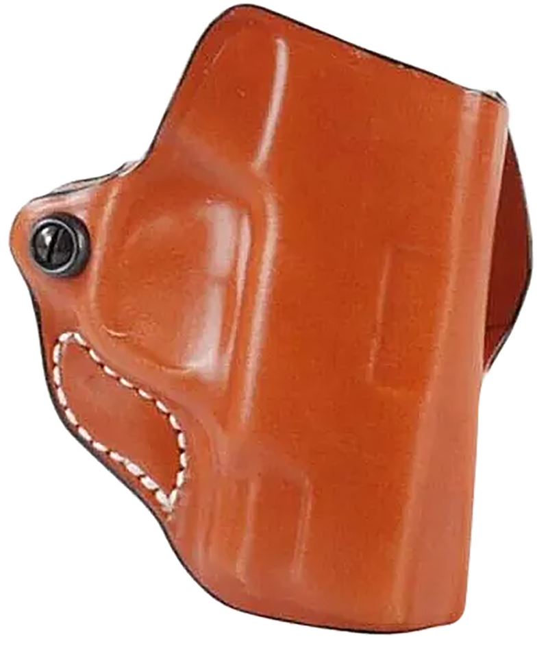 The DeSantis Mini Scabbard is a right-hand holster designed specifically for the S&W Bodyguard 2.0 in tan leather. This compact holster measures 8.0" L x 5.9" W x 1.6" H and offers secure retention for everyday carry or backup use.