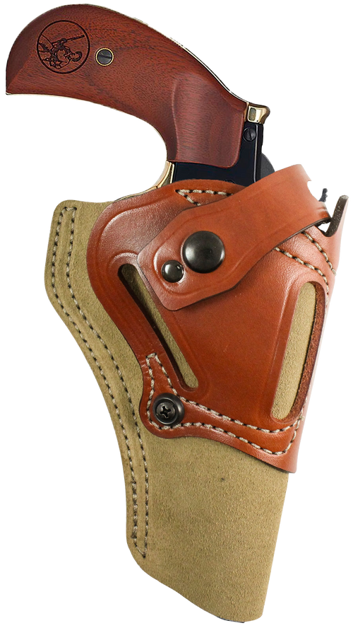 Outside waistband holster designed for Heritage Rough Rider and Ruger Wrangler revolvers. Features natural leather construction with a 1.75" wide belt mount and ambidextrous design for either hand carry. Fits 4 5/8" barrel revolvers.