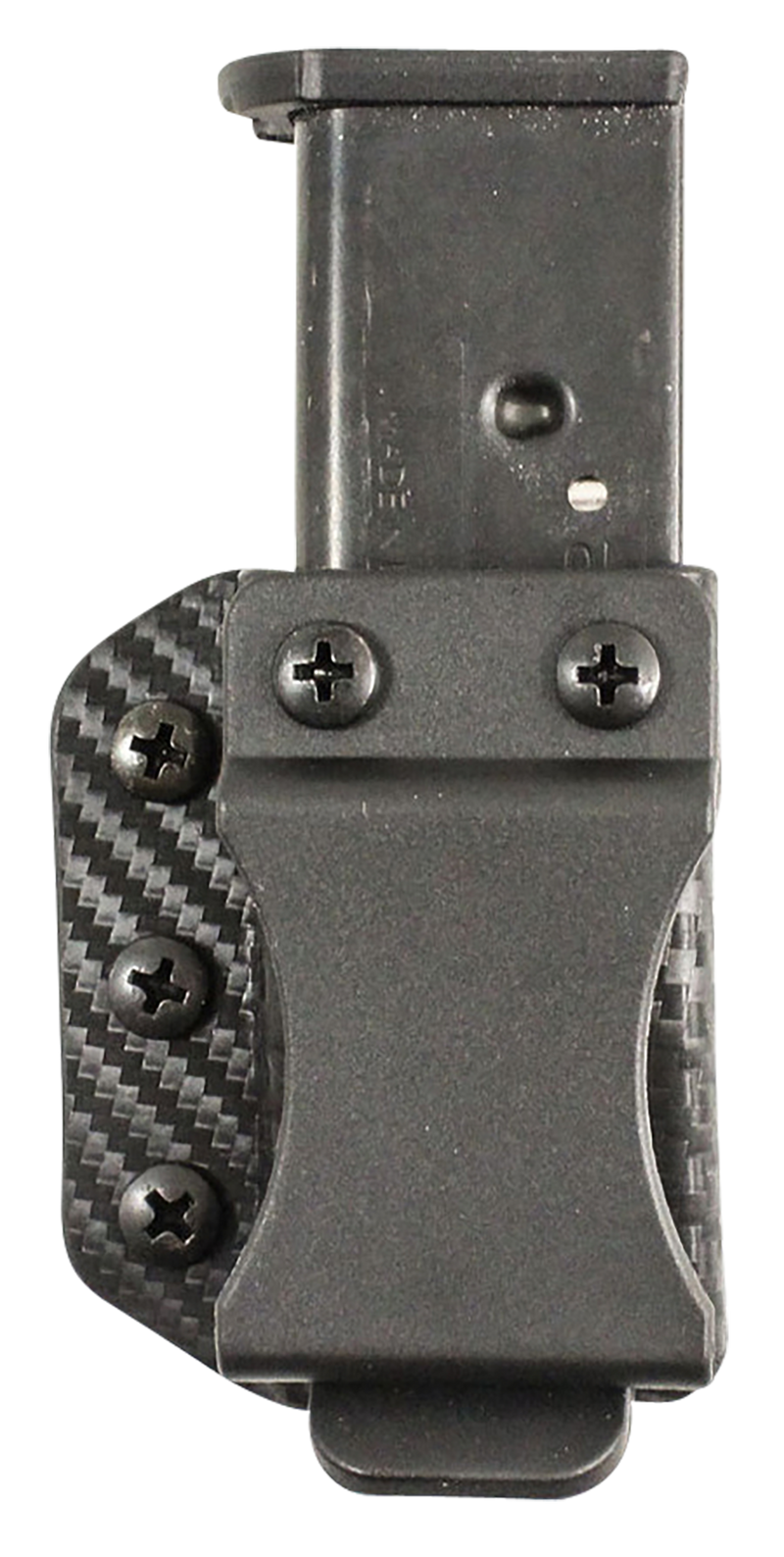 This IWB/OWB magazine pouch is constructed from durable Kydex material and features a belt clip mount compatible with most standard belts. Designed for Glock 43 platforms with ambidextrous carry options for left or right-handed shooters.