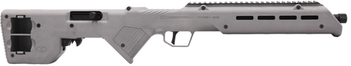 The Trek-22 is a fixed bullpup rifle chassis designed to convert Ruger 10/22 rifles into a modern platform. Constructed from gray synthetic material, it measures 26.75 inches overall length and accommodates the standard Ruger 10/22 action. This chassis provides a compact, ergonomic shooting platform with a bullpup configuration for improved handling.