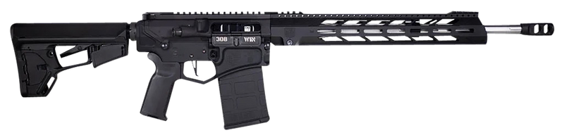 Semi-auto centerfire rifle chambered in .308 Winchester with an 18" stainless steel barrel and 1:10 twist rate. Features a forged 7075 T-6 aluminum upper and lower receiver, 15" M-LOK rail, CMC single-stage trigger, Magpul ACS-L collapsible stock, Magpul MOE K2+ grip, and threaded muzzle brake. Overall length adjusts from 37.25" to 40.75", weighs 8.96 lbs, and ships with one 20-round PMAG.