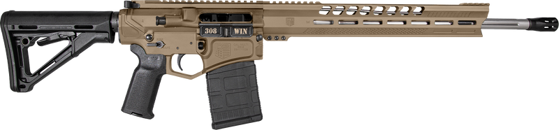 Semi-automatic AR-platform rifle chambered in 308 Winchester with an 18" stainless steel fluted barrel and 1:10 twist rate. Features a Magpul CTR collapsible stock, Magpul MOE K2 grip, 15" M-LOK handguard, and includes one 20-round PMAG. Weighs 8.73 lbs with overall length adjustable from 36" to 39.25" and comes with a flash hider.