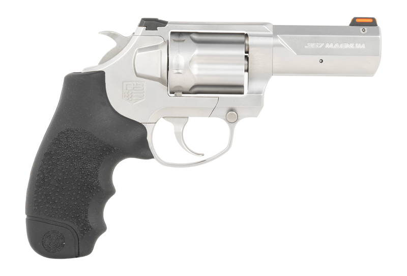 The Diamondback SDR is a double-action/single-action revolver chambered in .357 Magnum/.38 Special (+P) with a 3" stainless steel barrel and 6-round capacity. It features fiber optic sights, a glass bead stainless finish, and Hogue rubber grips, weighing approximately 23.9 ounces. Designed for concealed carry and personal defense with a compact frame and rounded edges to prevent snags.