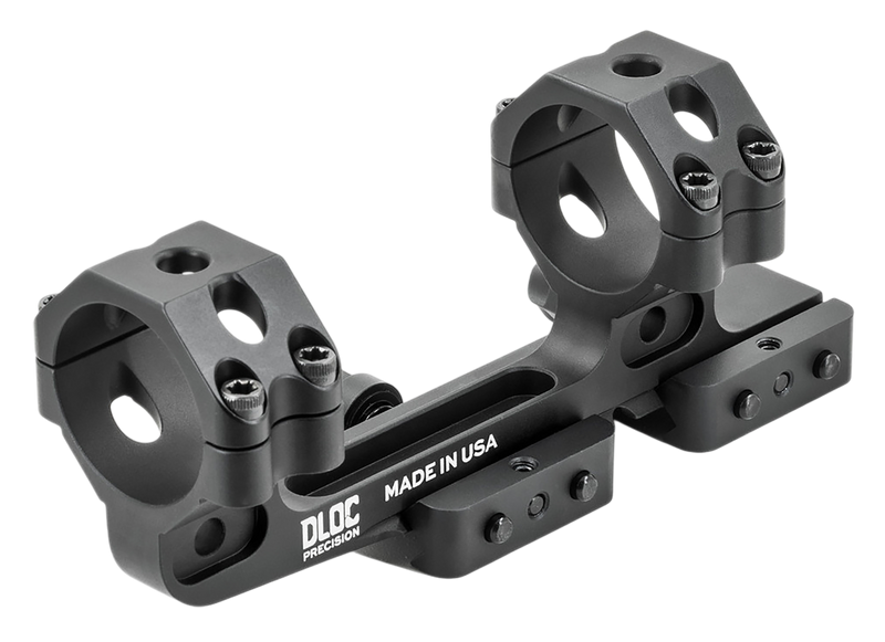 The DLOC Precision Cantilever Scope Mount is a 34mm tube mount designed for Picatinny rails with a 2.05" height. Machined from aerospace-grade aluminum with a hardcoat anodized black finish, it features press-fit recoil lugs and an auto-adjusting tool-free lock-up mechanism for maximum rail engagement and repeatable precision.