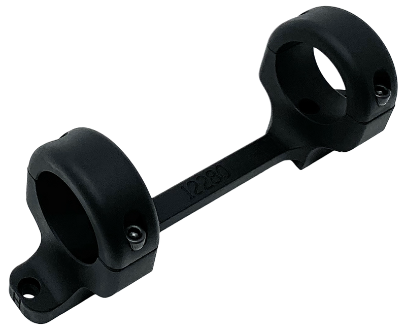 This is a 1-piece base and ring combo scope mount designed specifically for Ruger rifles. The mount features a 1-inch tube diameter and high ring height, machined from 6061-T6 aluminum with a matte black finish. Mounting hardware is included for direct receiver mounting.