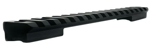 This is a Picatinny rail base designed for Savage firearms with 20 minutes of angle (MOA) elevation built-in. Constructed from 6061-T6 aluminum with black anodized finish, it mounts directly to the receiver and measures 8.6 inches long with a 3.5-inch width and 1.7-inch height. Rings are not included with this base.
