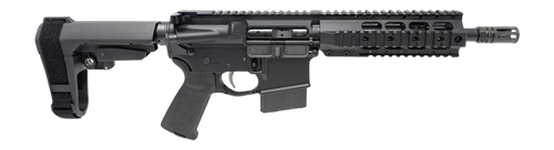 DPMS Kitty Kat chambered in 9mm with an 8" barrel and SBA3 brace. This is a semi-auto pistol designed as a compact, specialty firearm platform.