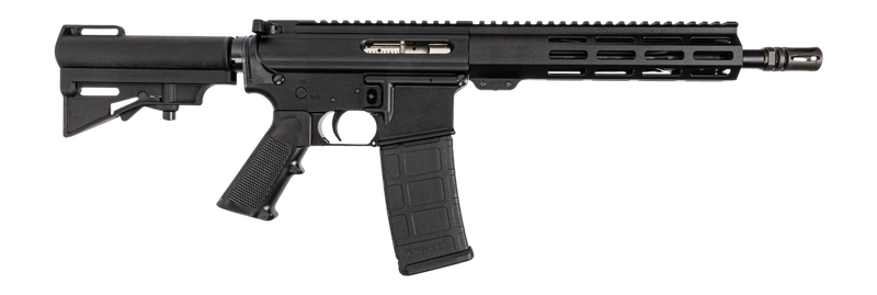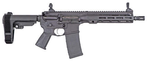 Semi-automatic AR-style pistol chambered in 5.56 NATO/.223 Remington with a 10.5" threaded barrel (1/2x28 thread pitch) and 30-round capacity. Features a CAR-style adjustable pistol brace, A2 pistol grip, M-LOK handguard, and manual safety. Direct impingement operating system with carbine-length gas system.
