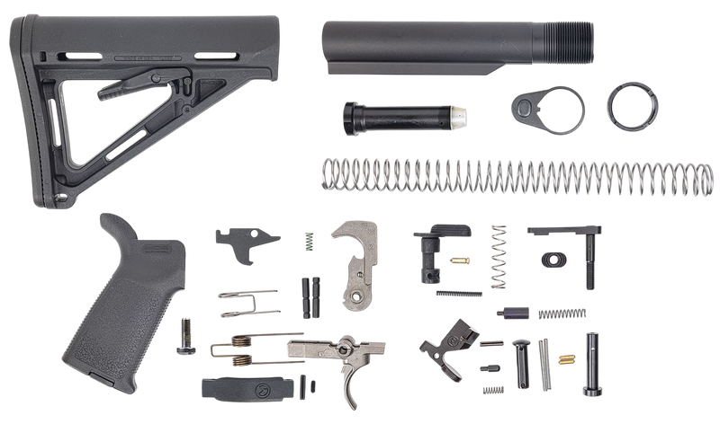 DPMS Panther Arms MOE PPT Lower Build Kit for AR-15 platform. Includes Black Magpul MOE grip and Magpul MOE Black stock. This lower receiver kit provides the foundation for building a complete AR-15 rifle.