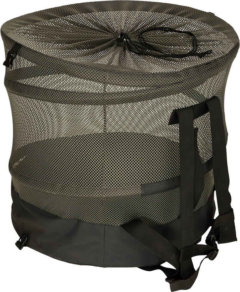 Large mesh decoy bag from Drake Waterfowl designed for transporting and storing waterfowl decoys. Features a durable olive-colored mesh construction with dimensions of 26.6" L x 25.1" W x 2.9" H, providing ample capacity for decoy storage and field use.