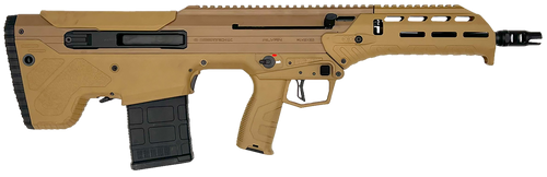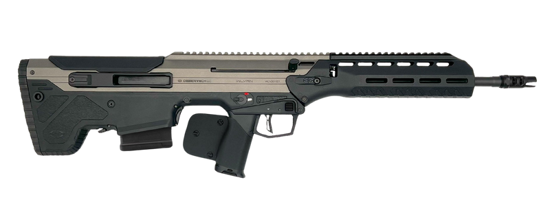 Desert Tech Wolverine chambered in .308 Win/7.62 NATO with a 20" threaded steel barrel and semi-auto action. This California-compliant model features a ratchet compensator, aluminum receiver, and 10+1 capacity. Weight is 7.63 lbs with no iron sights included.