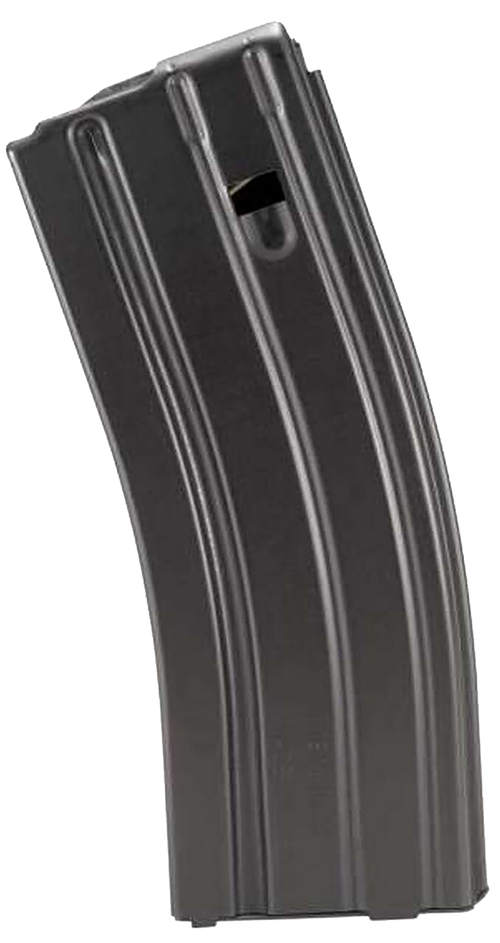 DuraMag detachable rifle magazine chambered in 5.56 NATO/.223 Remington with 30-round capacity, designed for AR-15 platform rifles. Features a stainless steel construction with black matte finish, orange anti-tilt polymer follower, and stainless steel spring for reliable feeding and durability.