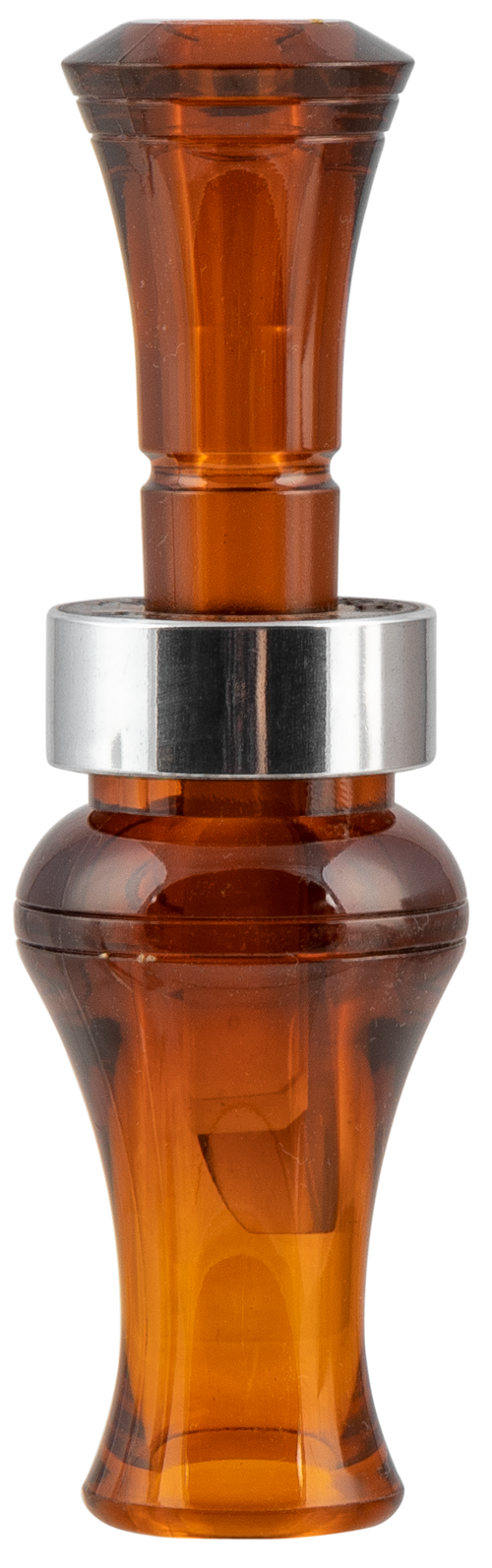 This double reed mallard duck call is made from brown bocote timber and produces authentic mallard sounds to attract ducks during hunting. Designed as a hand-operated call suitable for beginners, it measures 5.3 inches in length and does not require batteries or hands-free operation.