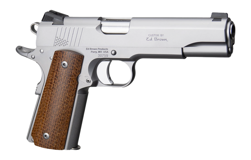 The Ed Brown 1776 Commemorative is a .45 ACP semi-automatic pistol featuring a stainless steel finish. This commemorative model honors American heritage with distinctive markings and the quality craftsmanship Ed Brown Products is known for.
