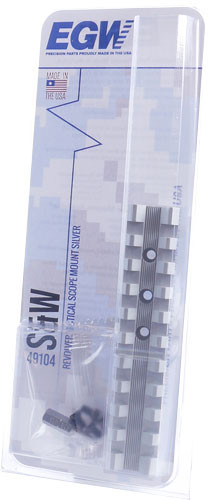 This Evolution Gun Works scope base is designed specifically for S&W revolvers and features a Picatinny rail mounting system in silver finish. It provides a secure platform for attaching optics to compatible Smith & Wesson revolver models.