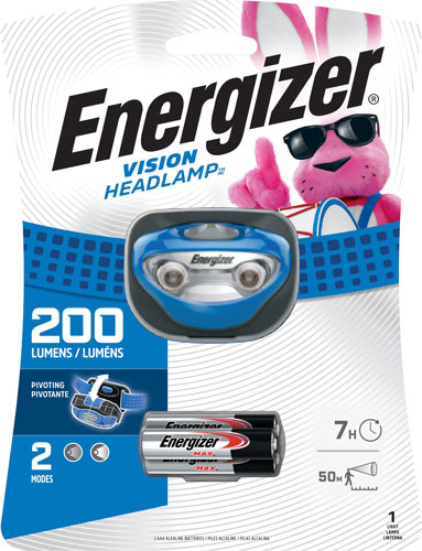 The Energizer Vision Headlamp delivers 200 lumens of brightness and runs on AAA batteries for convenient power. Designed for hands-free lighting during outdoor activities, hunting, camping, and tactical use. Compact and lightweight design allows for easy adjustment and extended wear.